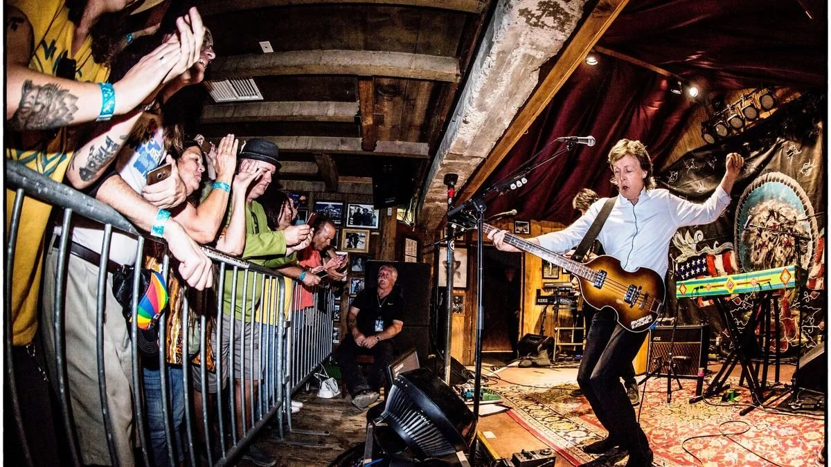 Paul McCartney playing in a 200 person capacity room, photo by MJ Kim.